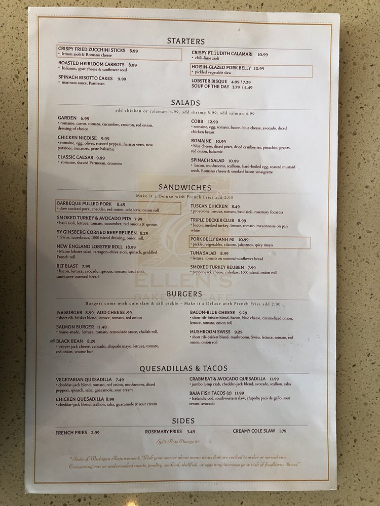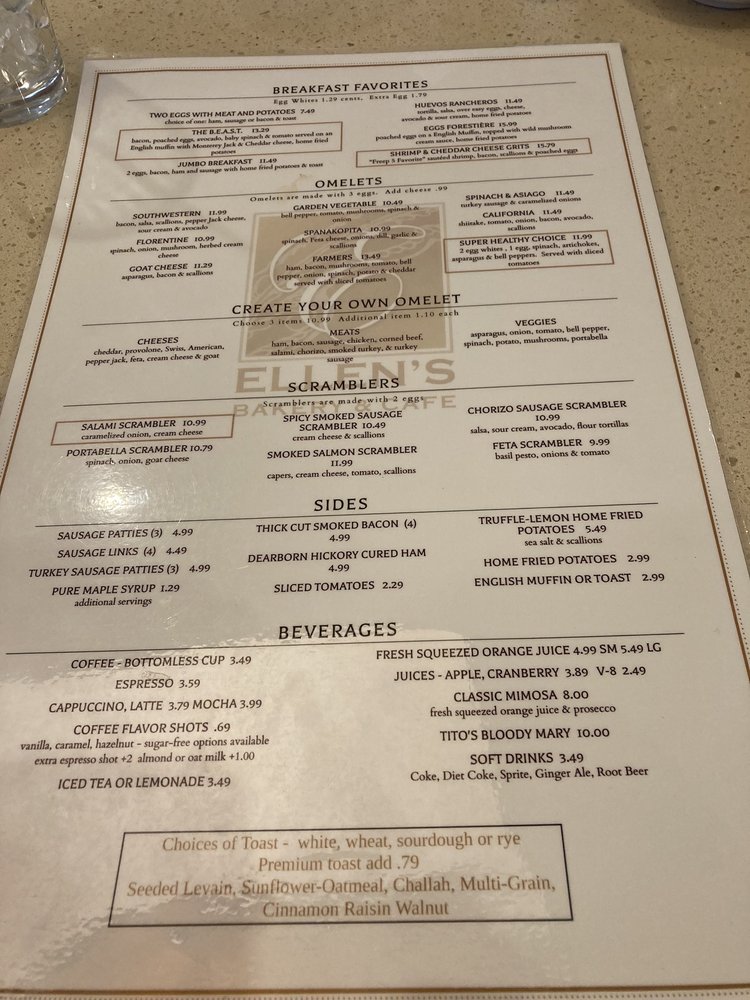 Ellen's Bakery & Cafe Menu (2025 Update)